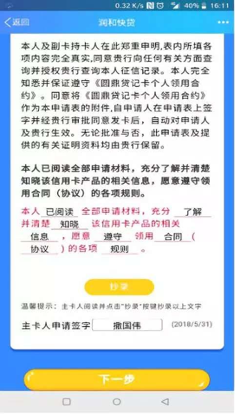 至此點(diǎn)擊申請單簽訂,線上貸記卡申請就完成了!