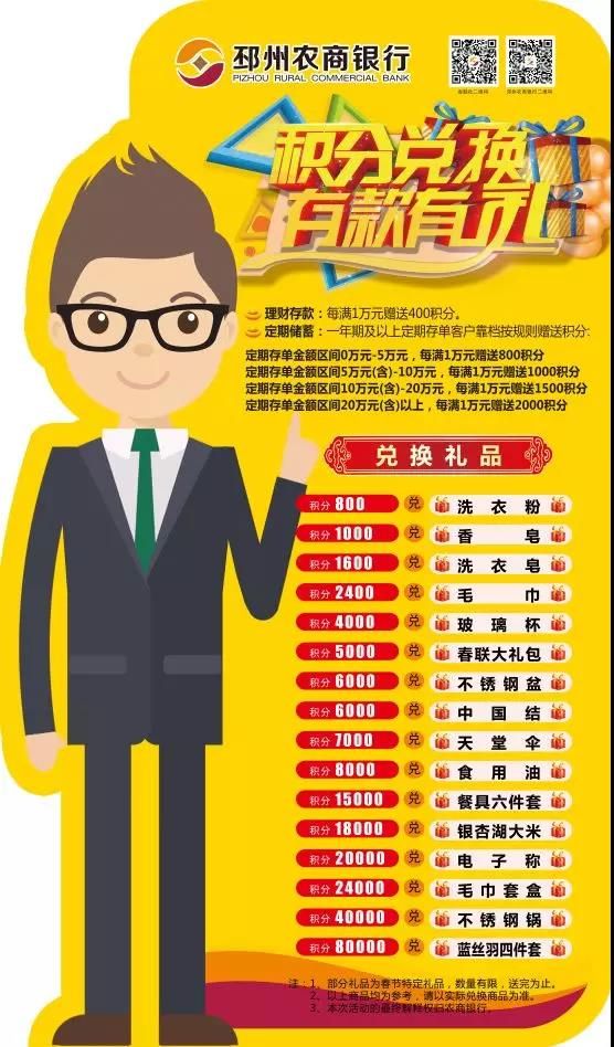 現(xiàn)在來(lái)邳州農(nóng)商行存款送積分,積分兌大獎(jiǎng)啦! 凡在我行辦理定期存款業(yè)務(wù)、理財(cái)業(yè)務(wù)客戶(hù)均可參與存款送積分,積分兌禮品活動(dòng),活動(dòng)時(shí)間2019年1月1日-2019年3月31日。具體大獎(jiǎng)?wù)埧聪卤恚?/span>
